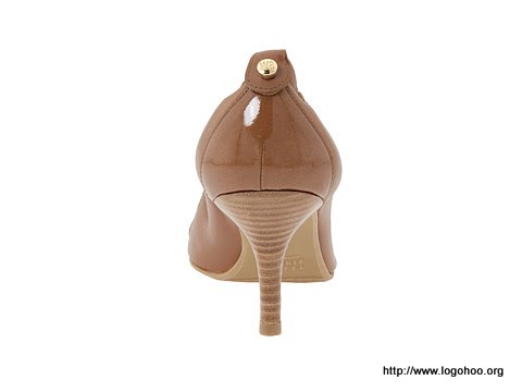 Logo hardware embellishments add interest to this tailored pump.